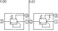 作動 | 液壓符號 | 類別 | 主訂購代號 | 流量 (l/min) |